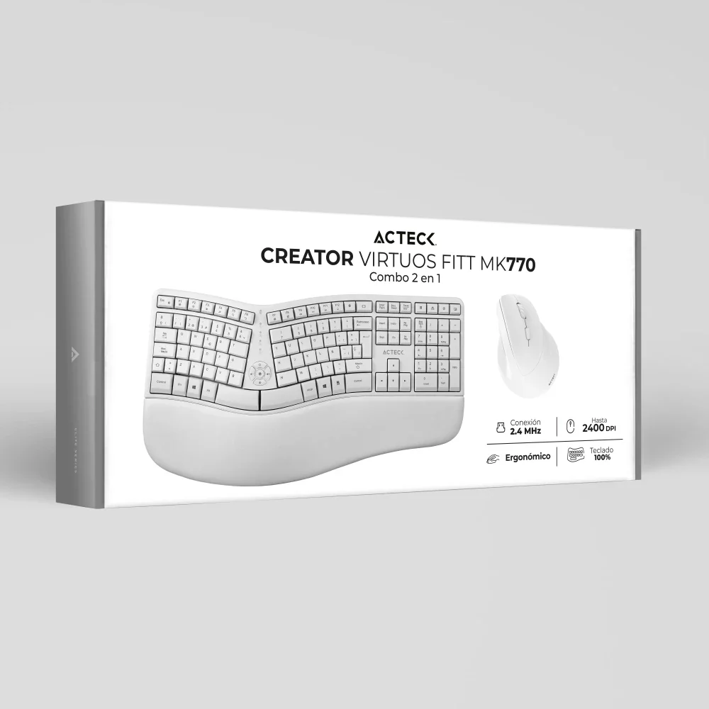 KIT ACTECK CREATOR VIRTUOS FITT MK770 / TECLADO Y MOUSE / INALAMBRICO / USB / MULTIMENDIA / 118 TECLAS / ESPAÑOL / RECARGABLE / 2400 DPI / OPTICO / VERTICAL / BLANCO / AC-936255